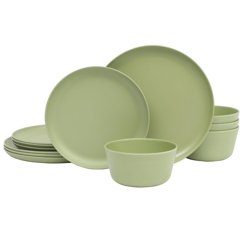 Make outdoor gatherings a tradition with the Fairhope 12-piece Melamine Dinnerware Set from Gibson Home. Crafted from chip-resistant melamine, each plate and bowl is patio-friendly and picnic-ready. Enjoy sharing meals under the sun in these colorful, matte-finish pieces for meals that delight the eye and satisfy the appetite. Pick and play with this dinnerware set by layering them with other pieces in bold colors or vibrant patterns to opt for an easy upgrade to your everyday table. Dishwasher safe. Top rack only. Do not microwave.