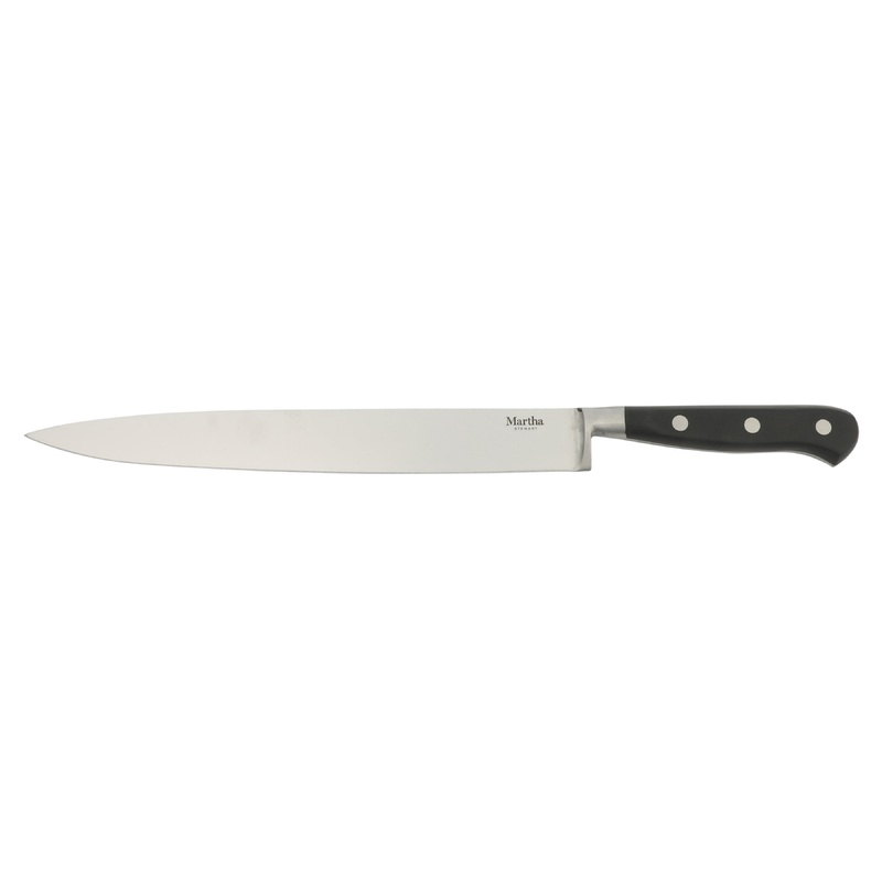 TRADITIONAL HANDLE SHAPE: This slicer knife has a classic, straight-top handle that shows the seamless extension from the blade to the handle. Made for easy vertical alignment, the straight top and riveted design offer a firm grip.