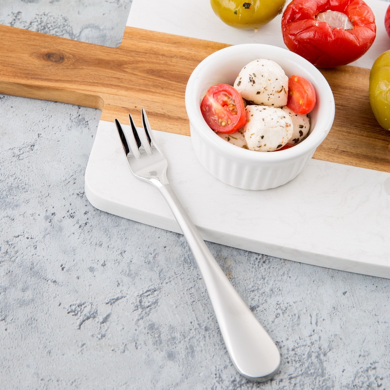 Provide simple elegance with this Master’s Gauge by World Tableware 703 029 Equity 6″ 18/10 stainless steel extra heavy weight cocktail fork. This cocktail fork features a sand-blasted handle and a mirror polished bowl for a two-toned appearance your guests will appreciate. Thanks to its extra heavy weight design, you can use it when you’re serving small appetizers like cheese cubes, olives, and oysters. Each piece in this versatile collection is perfectly weighted and balanced to feel comfortable in your patrons’ hands. Made of 18/10 stainless steel, this cocktail fork is designed with the finest materials and the highest standards in mind. With this cocktail fork, creating an unforgettable tabletop presentation is always effortless. Offering superior durability and a lustrous shine, this flatware is ideal for a variety of commercial venues. A leading provider of tabletop items designed specifically for the foodservice industry, World Tableware produces high-performance products that are both stylish and affordable. Their collection features a broad selection of dinnerware and flatware items with unique patterns, shapes, and colors that will upgrade any establishment’s look. Each piece is also crafted out of the finest raw materials and is quality tested for a long service life. For meticulous craftsmanship, superior versatility, and outstanding value, look no further than World Tableware! Overall Dimensions: Length: 6″