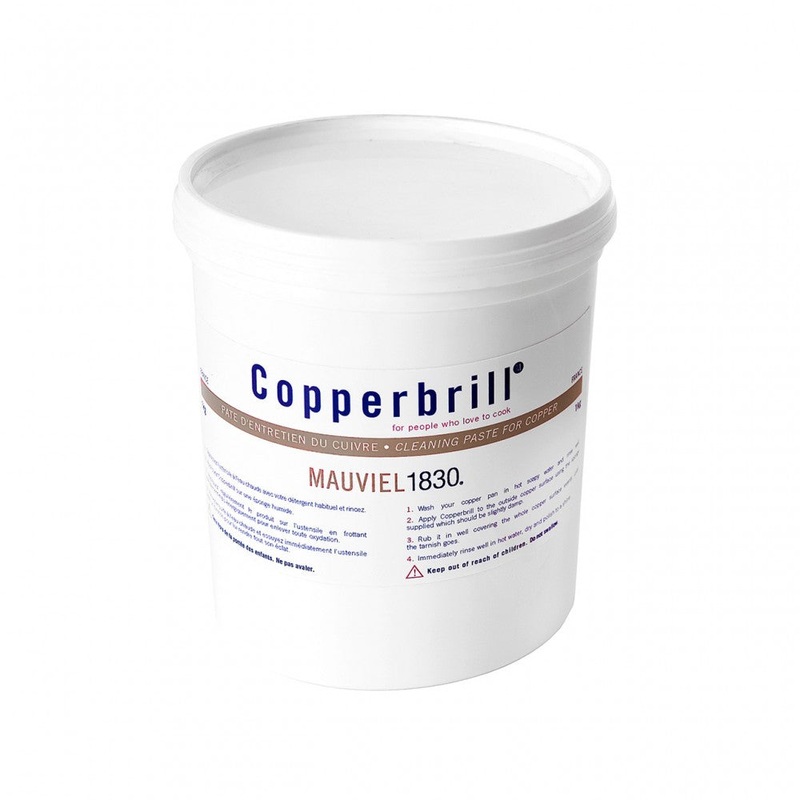 Copper cleaner 1-QT. Jar of copper cookware cleaner. Returns original shine to copper pots and pans.Easy to useStart by rinsing your pan thoroughly.Using a soft sponge or cloth, apply a small amount of the copperbrill paste to the pan.Wash the pan with the