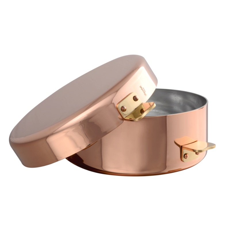 Manufactured in the respect of a know-how, dating almost two centuries, the range MTRADITION reflects perfectly the professional tradition of the utensils Mauviel.It is made up, of unique pieces, entirely hand- made; turbot fish kettles, braising pans and