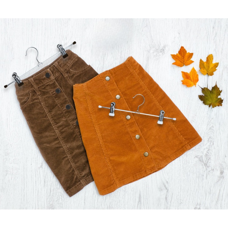 - These skirt hangers come in four beautiful colors, red, silver, white, and black. Coordinate them with the rest of your closet.