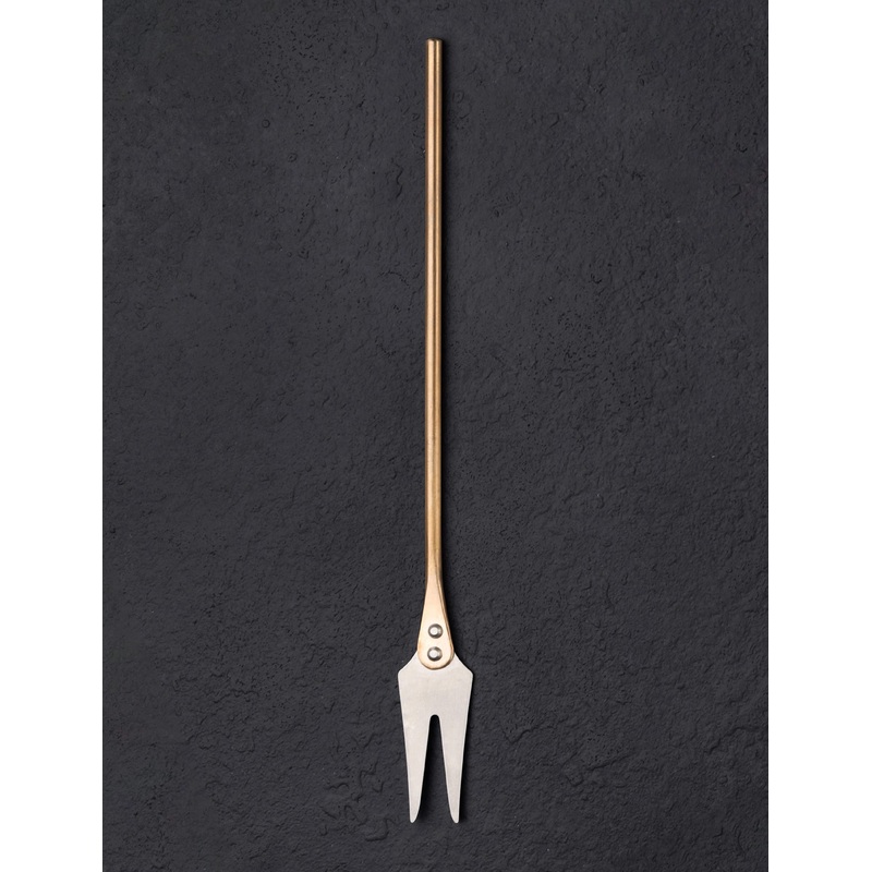 Simply elegant, this handcrafted two-prong cocktail fork features a handle of solid brass and head of stainless steel. Made one at a time in Colorado by artisan Jill Rikkers, the tines are strong enough to skewer without bending while the artisanal, rustic aesthetic is at home in virtually any setting. From seafood to cocktail onions, the versatility of a mid-size cocktail fork is difficult to match.