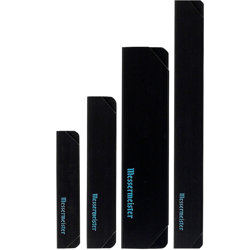 The Messermeister 4 Piece Translucent Multi-Color Edge-Guard Set is ideal for our 4 Piece Gourmet Knife Sets. It consists of an 8″ Chef’s, 10″ Slicer, 6″ Utility and 4″ Parer Edge-Guard. Messermeister invented the hard plastic Edge-Guard and it is available in various widths and lengths. Edge-Guards by Messermeister have been recognized as not only the original edge protectors, but by far, the finest quality and the most functional. If your knives are not stored in a block or you carry them around in knife luggage, edge guards are a must for the knives you want to take care of. Not dishwasher safe.