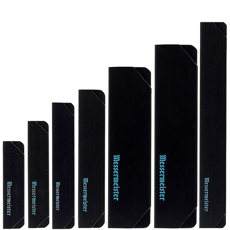 Messermeister invented the hard plastic Edge-Guard and it is available in various widths and lengths. Edge-Guards by Messermeister have been recognized as not only the original edge protectors, but by far, the finest quality and the most functional. If your knives are not stored in a block or you carry them around in knife luggage, edge guards are a must for the knives you want to take care of.
