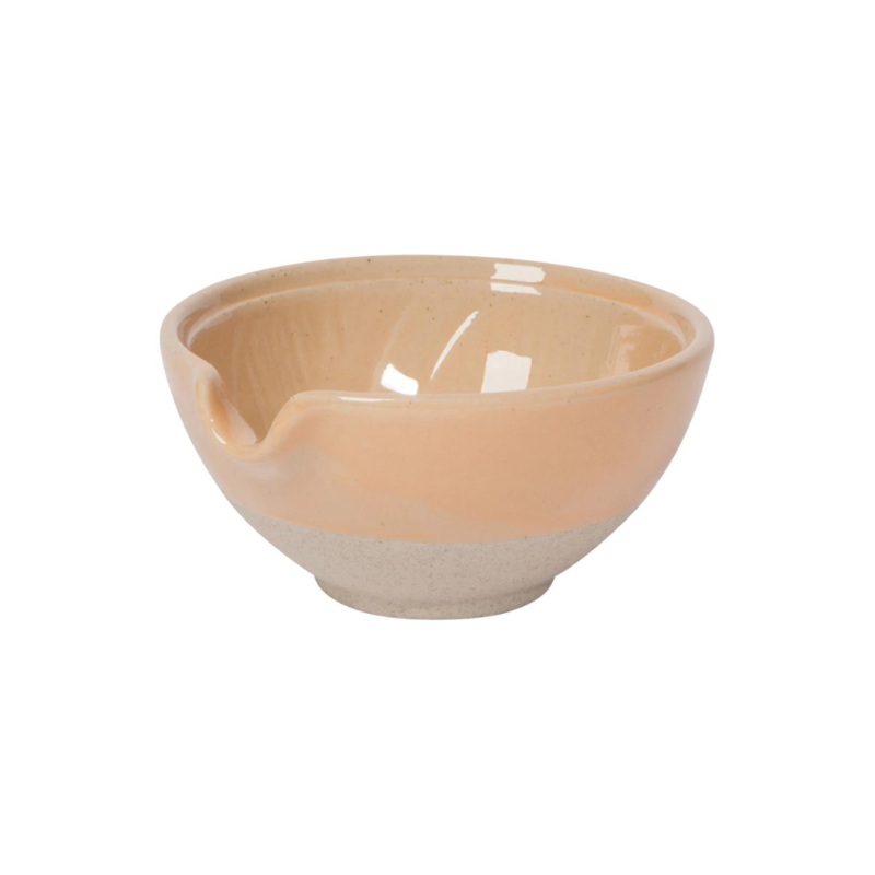 Add a touch of sunny charm to your table with the Mini Spouted Bowl in Peach. Perfect for serving sauces, salads, or dips, this stoneware bowl brings the vibrant energy of Mediterranean dining to your home. Its spout makes pouring and serving a breeze, whi