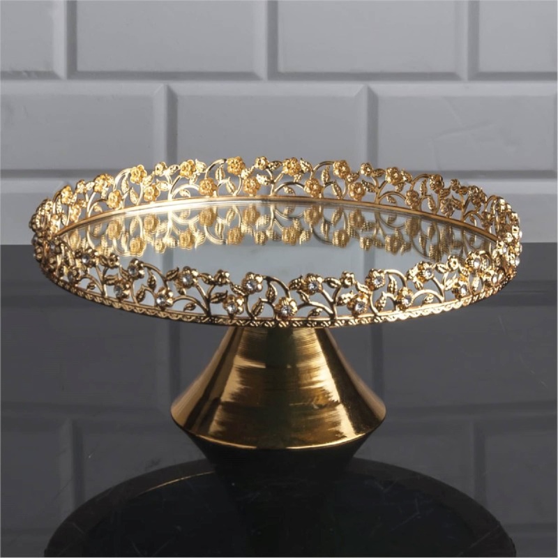 Mirrored Round Dessert Footed Stand Platter, 9.9 in