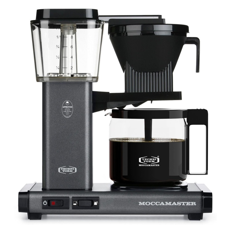 The Moccamaster KBGV Select makes it easy to brew either a half or full carafe the selector switch allows you to choose the amount you prefer. It features a glass carafe and an automatic drip-stop brew-basket that stops the flow of coffee when the carafe i