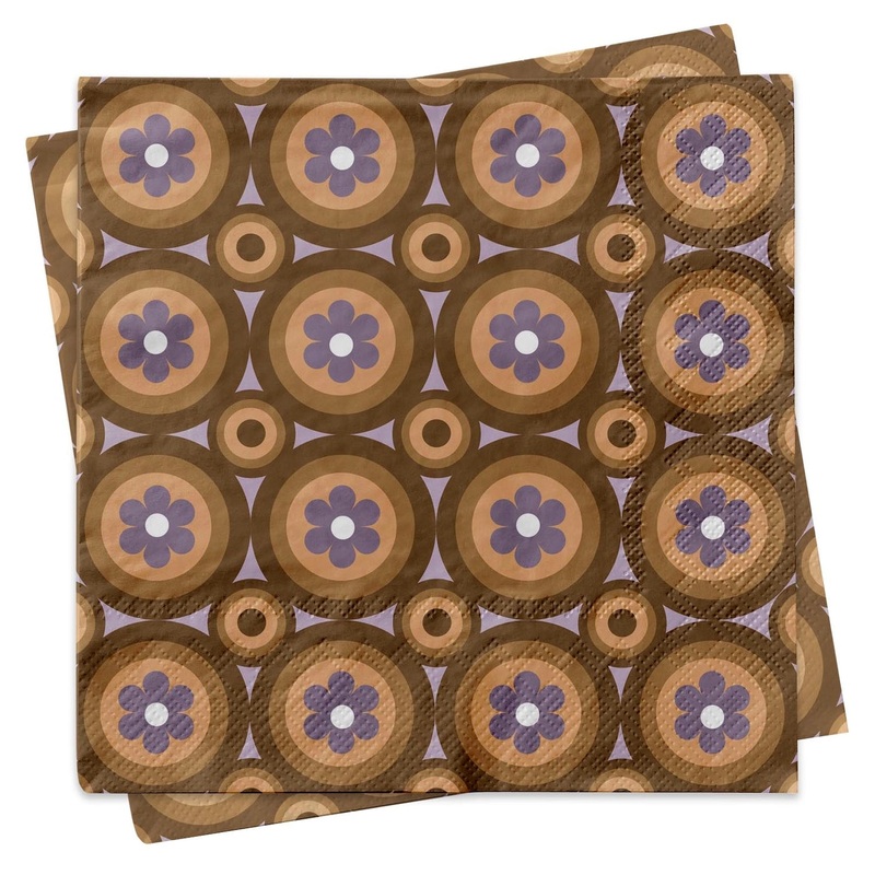Invite a hint of mid century modern style to your next gathering! These Flower In Circle Beverage Cocktail Napkins are the perfect choice to provide a touch of sophistication, with a beautiful purple and neutral brown color palette. The 3-ply construction
