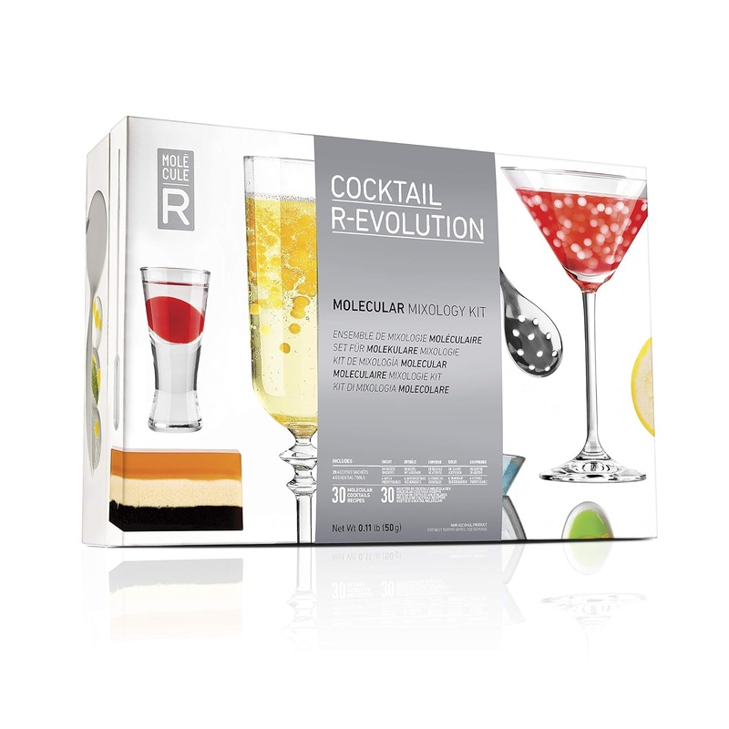 Time for a home bar revolution! This kit will bring burst-in-your-mouth cocktail spheres and drinks topped with beautiful, airy foams into your mixology routine, all thanks to plant-based additives and a few specialized but user-friendly tools. The included booklet comes packed with information and recipes designed to have you emulsifying and spherifying liquids (whether boozy or not!) in no time. Go on: get mixing!
