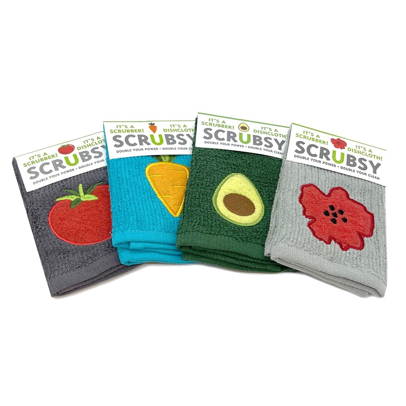 Fun Meets Function and Scrubbing Power. Dish chores are a cinch with these fun, functional dish cloths. The MUkitchen SCRUBSY is tough enough for baked on grime but the ridged terry cloth is soft and absorbent. Set includes 4 SCRUBSY in farm animal designs.