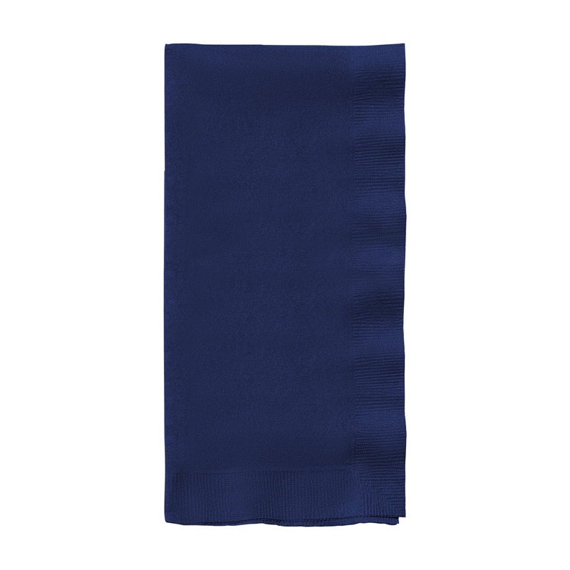 Thickness:2 PlyFolded dimensions:8" x 4"Unfolded dimensions:16" x 16"Case quantity: 12 packs of 50 napkinsColor: Navy BlueFold style: Prefolded (1/8 fold)Material: PaperDisposable: One-time party useRecycling code: #22 PAP (Paper)~Section 2~When you're set