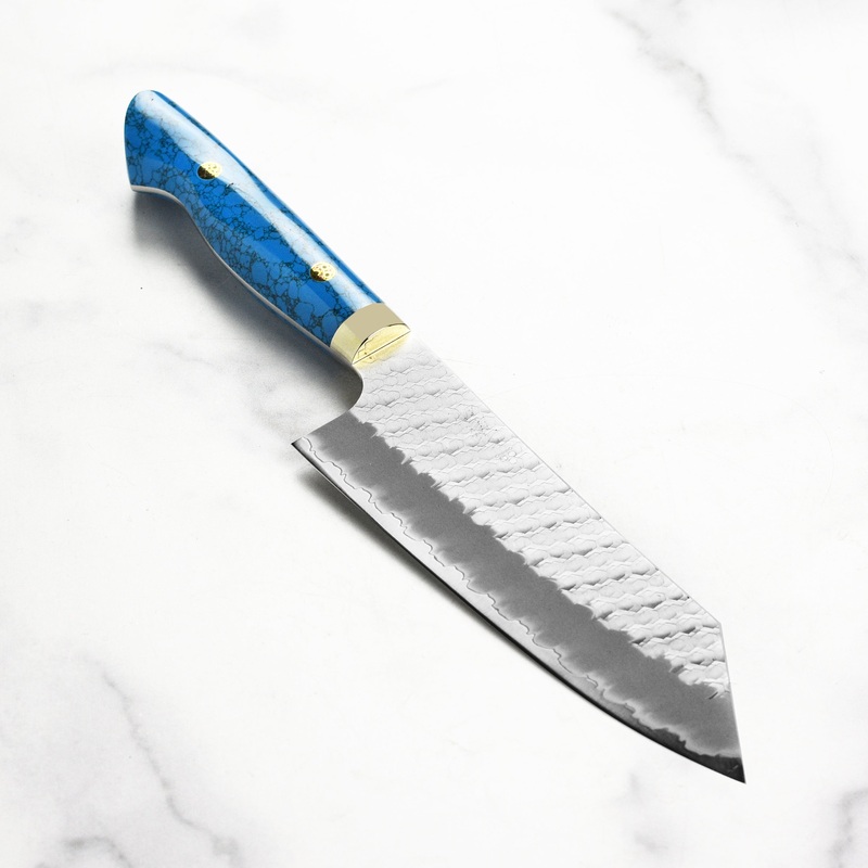 S427213309Nigara SG2 Migaki Tsuchime 7″ Bunka, Blue Turquoise