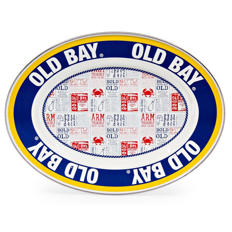 Inspired by the iconic Old Bay seasoning, this enamelware oval platter celebrates the bold flavors of the Chesapeake Bay. Featuring a classic design that evokes seafood feasts and coastal traditions, it's the perfect platter for serving shrimp, crab, and o