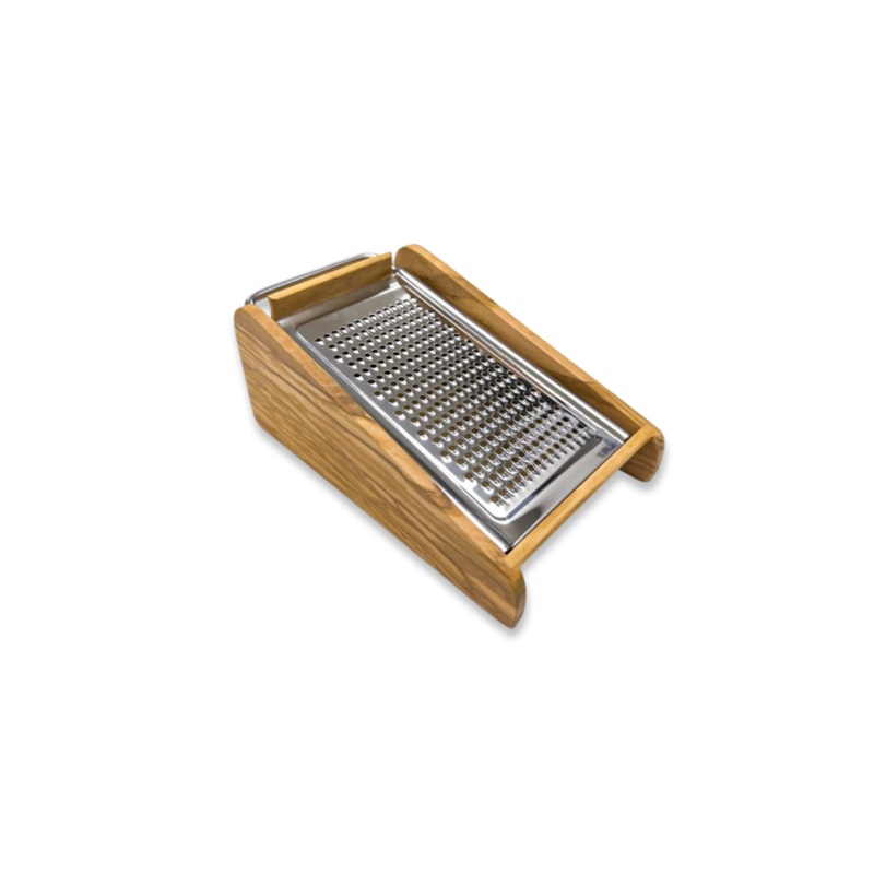 The innovative Olive Wood Cheese Grater a perfect blend of style and functionality. Crafted with precision, this grater features a removable metal grate, seamlessly nestled within a beautifully designed olive wood holder. Grate your favorite cheeses effortlessly, and with a quick removal, reveal the collection inside. Elevate your cheese preparation with the unique and charming design of our Olive Wood Cheese Grater a stylish addition to any kitchen.