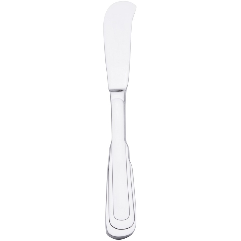 Set your table in style with this Oneida 2507KSBF Cityscape flatware butter spreader. Featuring an intriguing, symmetrical design of tiers and curved lines, this flatware brings to mind images of metropolis skylines. Made out of 18/10 stainless steel for l