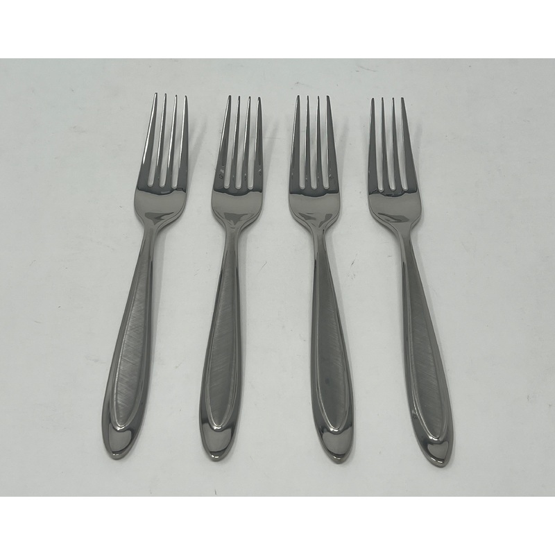 AuroraSalad Forks Set of 4GRACEFUL. VERSATILE. SOPHISTICATED.AURORA PLEASES THE EYE WITH GRACEFUL CURVES AND A LUSTROUS TWO-TONE FINISH. THE RAISED CENTRAL PANEL IS DETAILED WITH A SOFT FLORENTINE FINISH. IT IS THEN FRAMED AND HIGHLIGHTED WITH A BRIGHTLY P