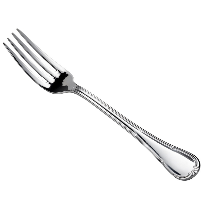 Create an inspiring table setting with this Oneida B022FDIF Titian 8″ 18/0 heavy weight stainless steel European table fork. This European table fork features a subtle scroll design around the edges that ends in an elegant crown pattern at the end of the handle. Made of 18/0 stainless steel, the Titian line is designed with the finest materials and the highest standards in mind while featuring a polished, professional finish. Plus, the easy to maintain form is designed to resist rust and corrosion, while also ensuring long-lasting color and shine, making it ideal for commercial venues. Use this European table fork while serving main entrees to your guests. The Oneida Group prides themselves on producing high quality products that offer superior service in your dining area. They have manufactured and marketed stainless steel flatware that has been constantly exceeding customer’s expectations around the globe. With generations of expertise in the industry, Oneida is a name you can trust to provide your restaurant, hotel, or bistro with superb flatware. With this European table fork, creating an unforgettable tabletop presentation is always effortless. Overall Dimensions: Length: 8″