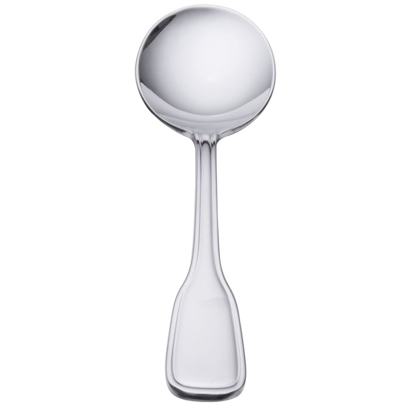 Set your table in style with this Oneida B167SRBF Stanford 18/0 heavy weight bouillon spoon. A fluted border defines the handle to create an attractive, classic design. Made out of 18/0 stainless steel, which contains 18% chrome, this 6 1/2" spoon features