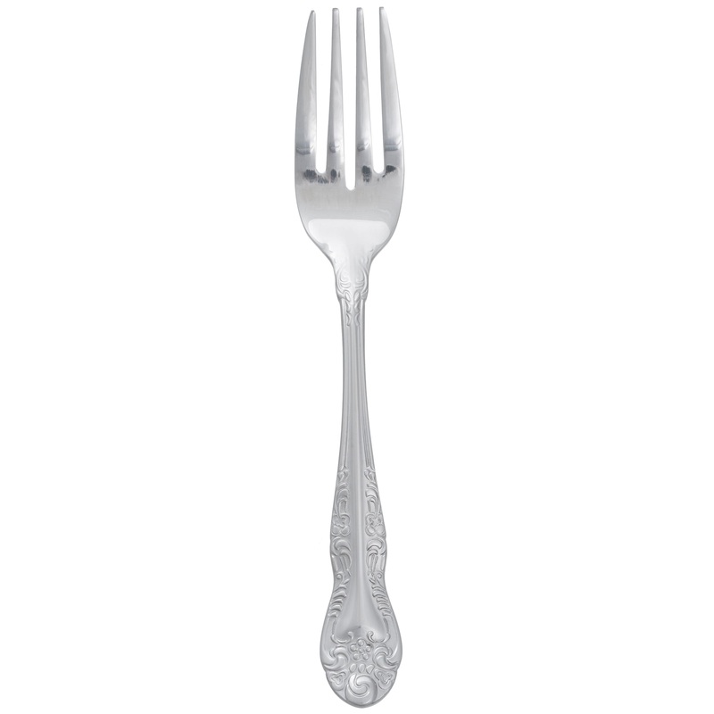 Set your tables in style with this Oneida B990FSLF Rosewood flatware salad / pastry fork. This 6 1/4″ fork’s elegant design features ornate blossoms and scrolls bordering the handle’s curves. Recommended for use in the healthcare industry, this durable fork is made from 18/0 stainless steel, which contains 18% chrome. With a bright finish, its refined and attractive look is sure to help convey a sense of quality to your customers.