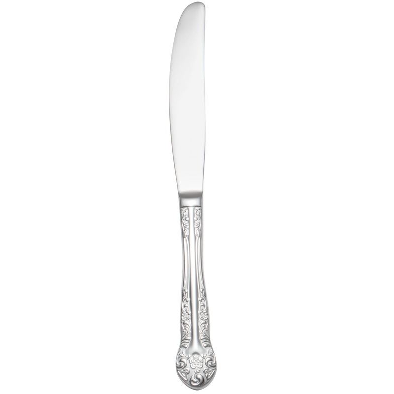 Set your tables in style with this Oneida B990KPVF Rosewood flatware dinner knife. This 8 5/8″ knife’s elegant design features ornate blossoms and scrolls bordering the handle’s curves. Recommended for use in the healthcare industry, this durable knife is made from 18/0 stainless steel, which contains 18% chrome. With a bright finish, its refined and attractive look is sure to help convey a sense of quality to your customers.