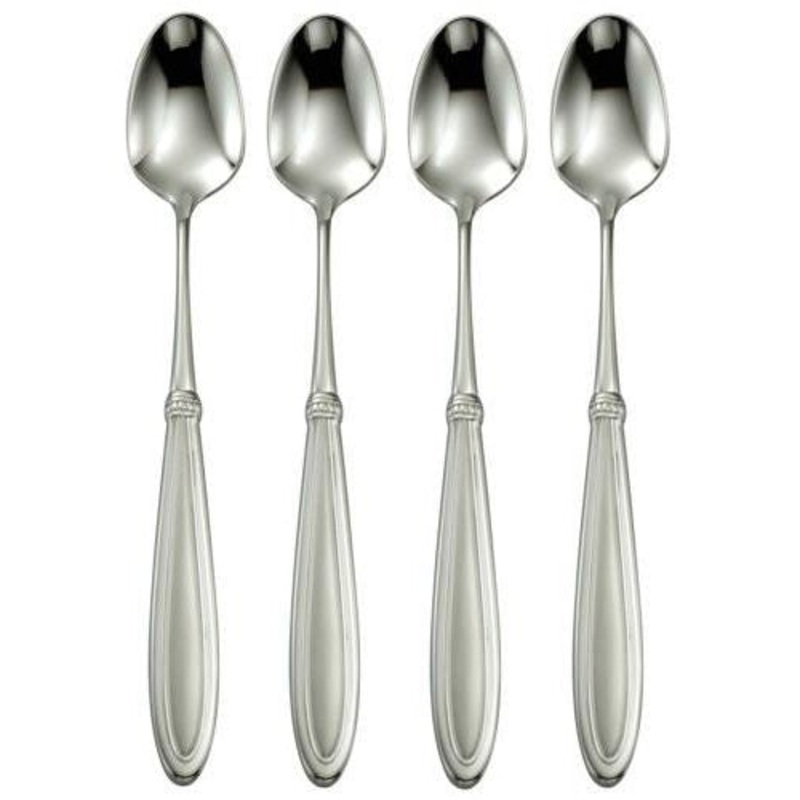 Divani Iced Tea Spoons Set of 4 Intrigue and Appeal. A raised bead-blasted detail slides down the teardrop handle center from neck to tip end. The surrounding mirrored edge creates a powerful and interesting visual contrast on Divanis simple silhouette. Ba