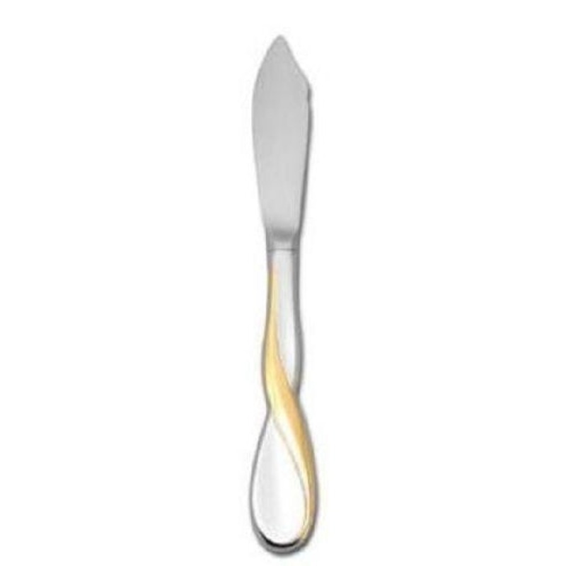 Golden Aquarius Butter Knife Engaging. Moving. Mod.The Golden Aquarius pattern is sleek, bright and full of spunk. The exquisitely accented curves and fluid design are enhanced by 24 karat gold electroplate. Great for family dining or entertaining, combini