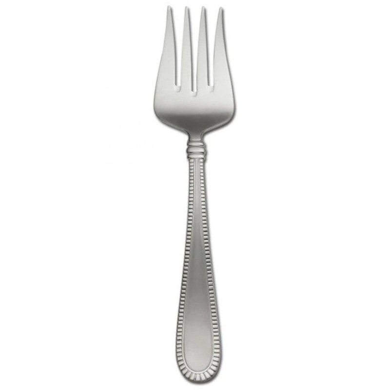 Interlude Serving Fork Grounded in Grace. The symmetrically ridged edging of Interlude surrounds a muted satin finish handle center. Curvy silhouette and raised banding at the narrow point also add to the tactile quality of each piece. The full handle acce