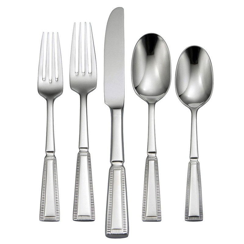 Oneida’s Palisade is flared, formal, and fashionable. Detailed with dentil marking around its bright rectangular handle, this geometric flatware flaunts a decorative notch near the shank for added comfort and balance. Palisade is a versatile pattern that complements classic or undecorated dinnerware.