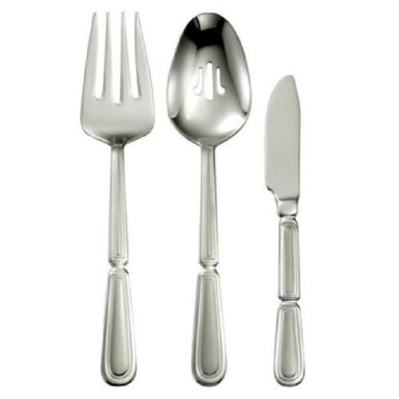 This set is perfect for a balanced meal using the serving fork for meat or fish, pierced serving spoon for a side dish and a butter knife to spread butter on bread.