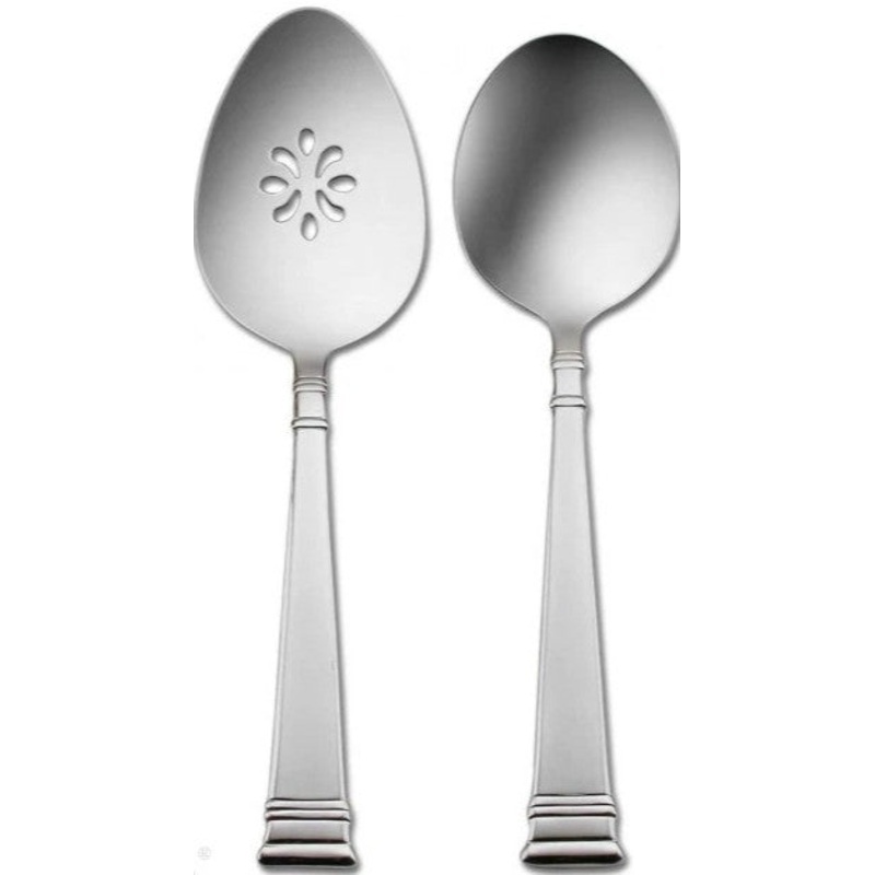 This set contains essentials that every entertainer needs. The casserole spoon is for a dinner casserole and the servall for the pie or cake at dessert.