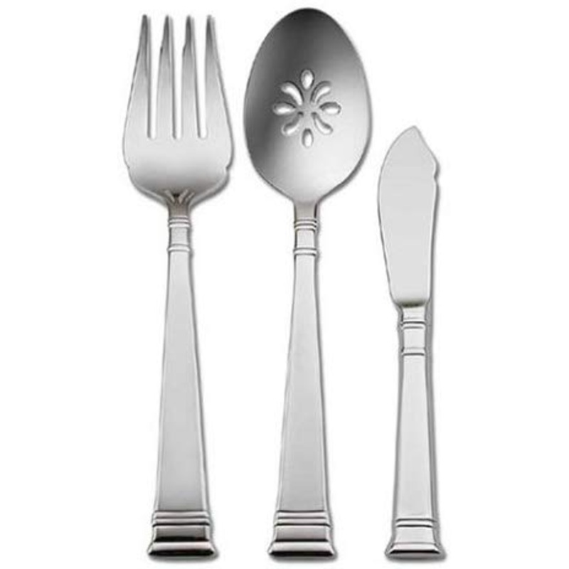 This set is perfect for a balanced meal using the serving fork for meat or fish, pierced serving spoon for a side dish and a butter knife to spread butter on bread.