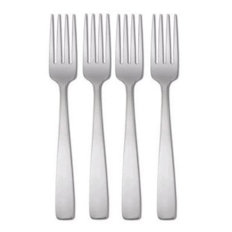 This contemporary flatware boasts a lustrous satin handle that is perfectly balanced. A versatile design that’s easy to match with most any dinnerware and stemware. 18/8 Stainless Steel The large fork from the 5 Piece Place setting. Set of 4. 7 1/4″ long |