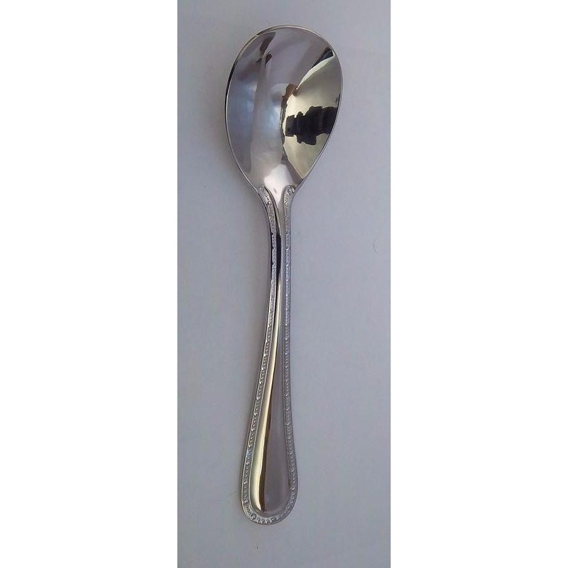 Taraza Sugar Spoon Embellished Opulence. This pattern boasts a teardrop shaped handle, garnished with a delicate beaded motif along the edge. Full in the hand with superior balance, Taraza's exquisite detailing surrounds a raised mirrored center panel that