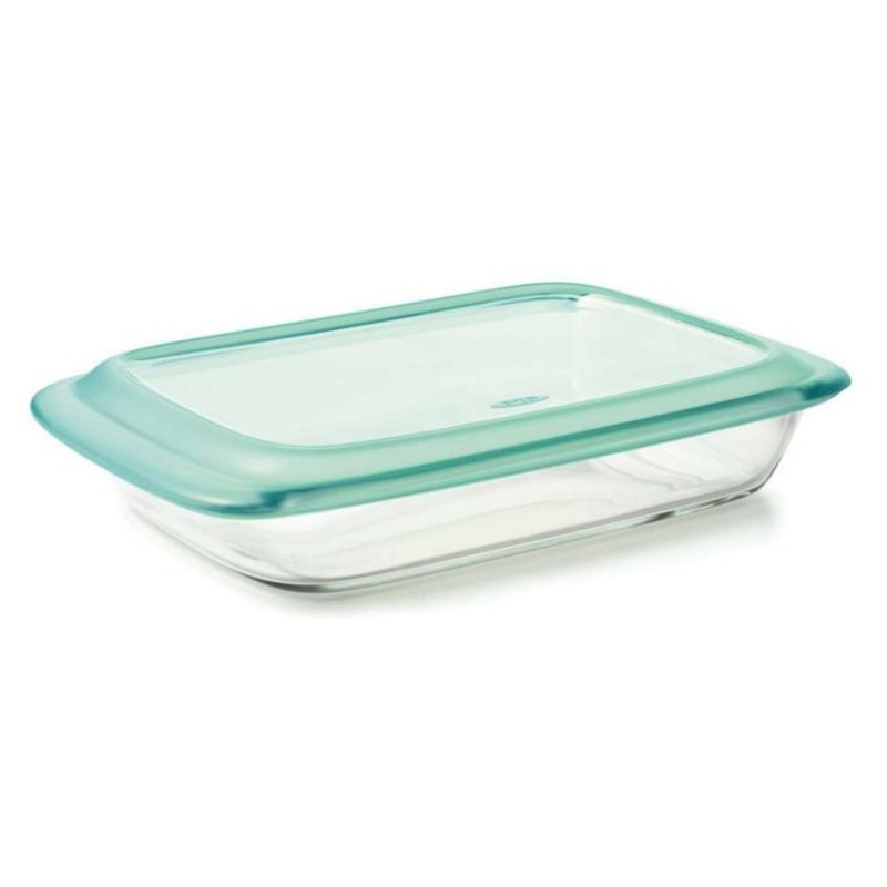 Made of borosilicate glass that can withstand extreme temperature changes, OXO Good Grips Glass Bakeware allows you to take your dishes directly from the freezer or refrigerator to the oven without the risk of cracking or shattering; theres no need to (im)patiently wait for your food to defrost, or worry that you didnt let it defrost enough. Generous handles and sloshproof lids make moving full dishes easier, and the clean, elegant design means you can take them from the oven directly to the family table.
