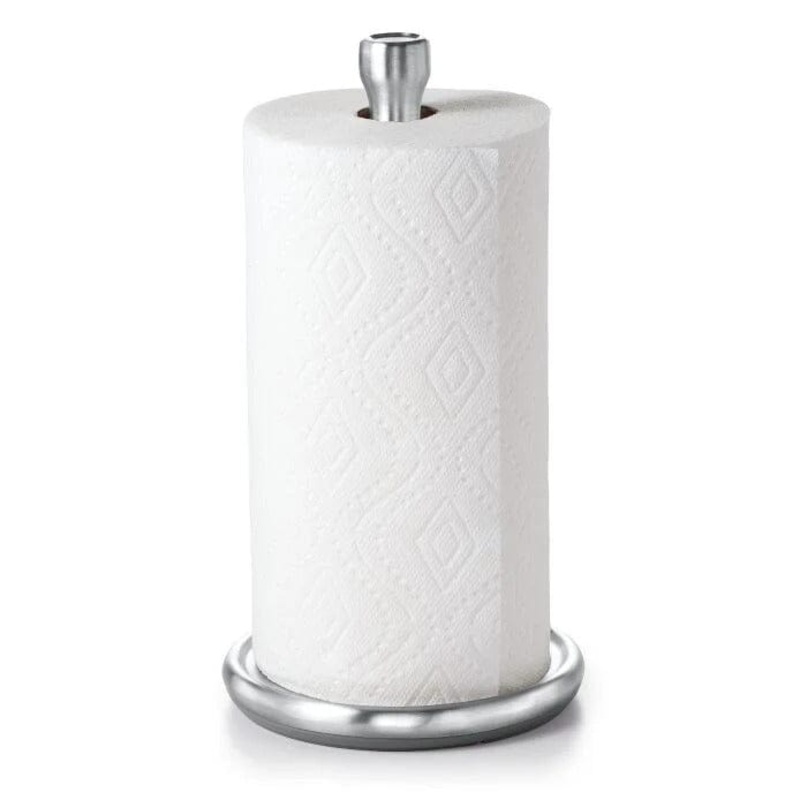 The last thing you want when cleaning up a spill to deal with an unwieldy paper towel roll. The OXO Good Grips Steady Paper Towel Holder is engineered for one-handed tearing, so you get precisely the amount you need, no matter the mess. Smooth rotation lets you rip on the run, and the raised lip keeps even jumbo-sized rolls contained. The weighted, non-slip base provides extra stability, while the sleek, stainless steel construction and built-in carrying knob fit in any room in your house.