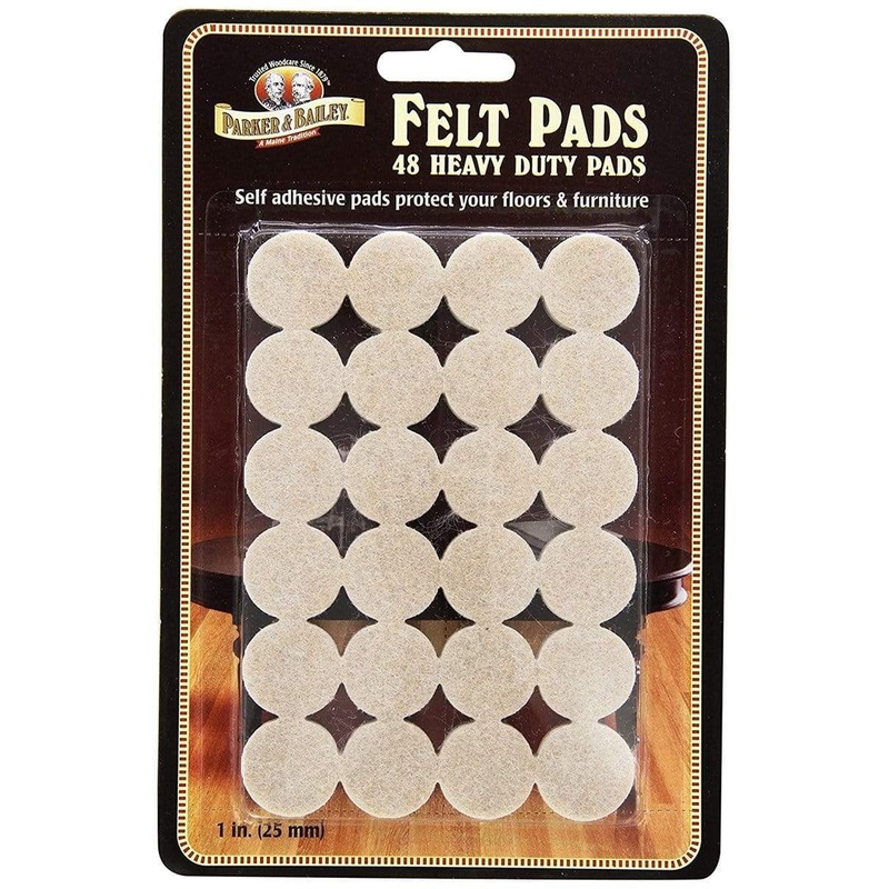 Paker & Bailey Heavy Duty Felt Pads are stronger, longer lasting adhesive and more felt cushioning than other brands. Protects wood and file floors from scratching and makes moving furniture easier.48 pack; 1 inch size padsGreat for small and mid-size chai