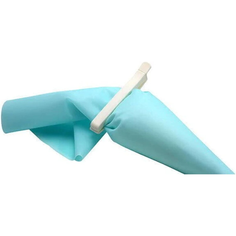 Built for your baking needs, this Ateco 4" plastic pastry bag clip will promote freshness and minimize waste during baking. Just like a barette, this clip snaps onto pastry and chip bags, eliminating leaks and spills during transportation or pastry decorat