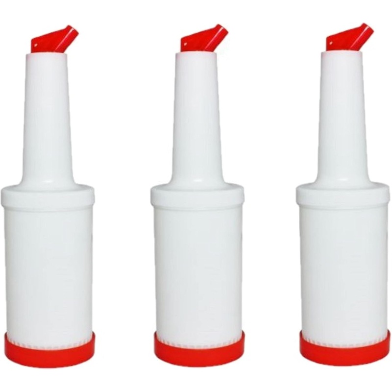 Set of 3 Pour and Store Juice & Liquor Bottles Durable Plastic Bar Pour Bottles for Juices, Liquors, Dressings, and More Durable Construction for Long-Lasting UseCrafted with a high-density polyethylene body and durable ABS pour spout, these pour bottles a